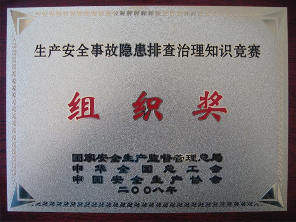 近日,在国家安监总局、中华全国总工会以及中国安全生产协会三部门联合组织的“生产安全事故隐患排查治理知识竞赛”活动中,公司被评为竞赛优秀 “组织奖”。公司李秀臣副总裁所做的矿山企业典型经验介绍受到上级有关部门和安全总局有关领导的充分肯定。