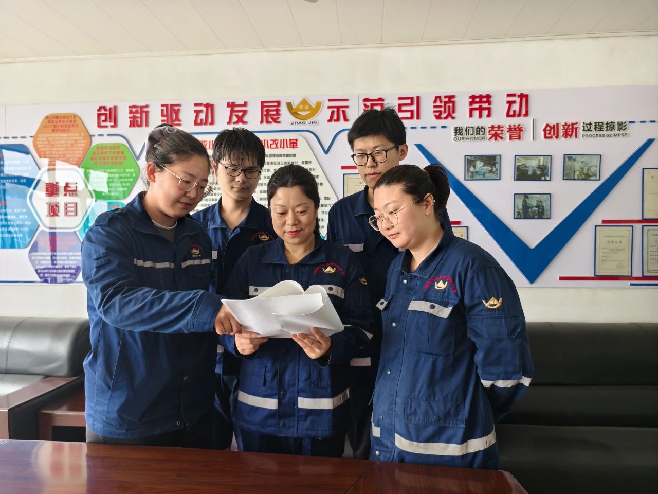 2023年,刘俊波参与研发“微细粒浸染型难处理矿石窄粒级磨矿及高效选别关键技术”。面对这份沉甸甸的信任,她跟着团队开启了“白+黑”工作模式,几个月间,他们白天跑车间现场、做实验,晚上整理资料、做化验,跑遍了生产厂区的每一处流程。面对研发初期等试验数据不佳,这个要强的姑娘没有气馁,她迅速调整心态,重整旗鼓、从头再来,完成了大量的历史资料分析和反复试验工作,汗水浸透的笔记本里密密麻麻记录着每处流程数据和试验结果,最终该技术应用于氰化生产以来,氰化车间磨矿细度提高,氰渣品位有效降低,年增效益近1000万元。