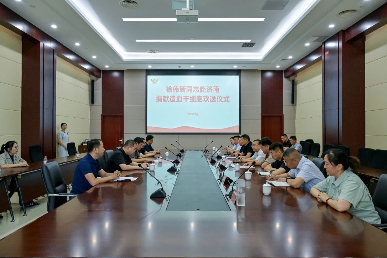 欢送仪式上,招远市第8例、招金集团第4例造血干细胞捐献者滕丽梅为徐伟新献上鲜花,送上最真挚的祝福。现场全体人员用经久不息的热烈掌声,向这位即将踏上生命接力的英雄致以最深的敬意。面对大家的赞誉,徐伟新显得十分谦逊。他动情地表示:“能够配型成功,是一种难得的缘分,更是一份沉甸甸的责任。我只是做了一件力所能及、应该去做的事。想到自己的捐献能挽救一个生命,给一个家庭带去希望,内心就感到无比踏实和幸福!”